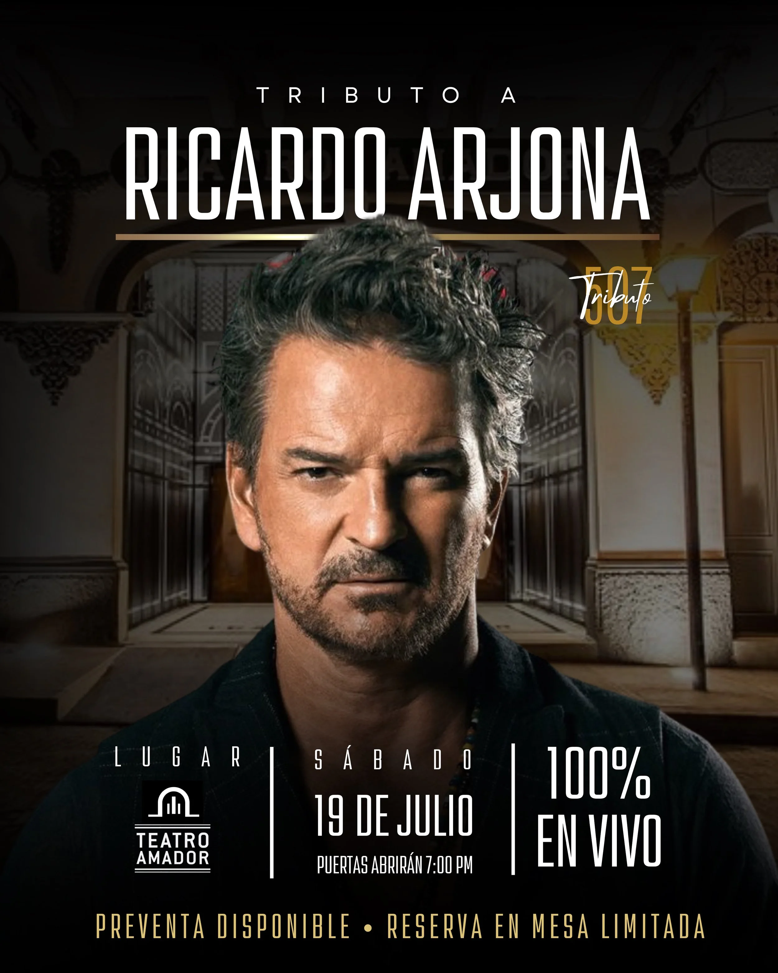 In this tribute to Ricardo Arjona, you’ll enjoy his unmistakable style that blends Latin pop, heartfelt ballads, and soft rock, all seasoned with Caribbean rhythms and traditional Latin American sounds.