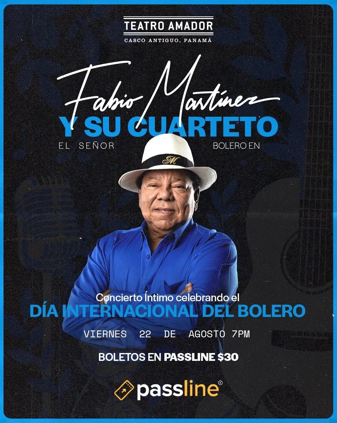 Fabio Martínez and his Quartet present an intimate night filled with bolero and emotion. The Lord of Bolero in Panama will celebrate International Bolero Day with his audience in a special concert you won't want to miss.