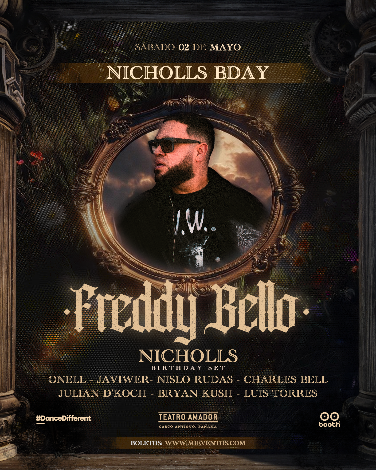 El Teatro Amador se transforma en el escenario de una noche exclusiva, donde el Tech House toma protagonismo en su máxima expresión, celebrando el cumpleaños de Nicholls.